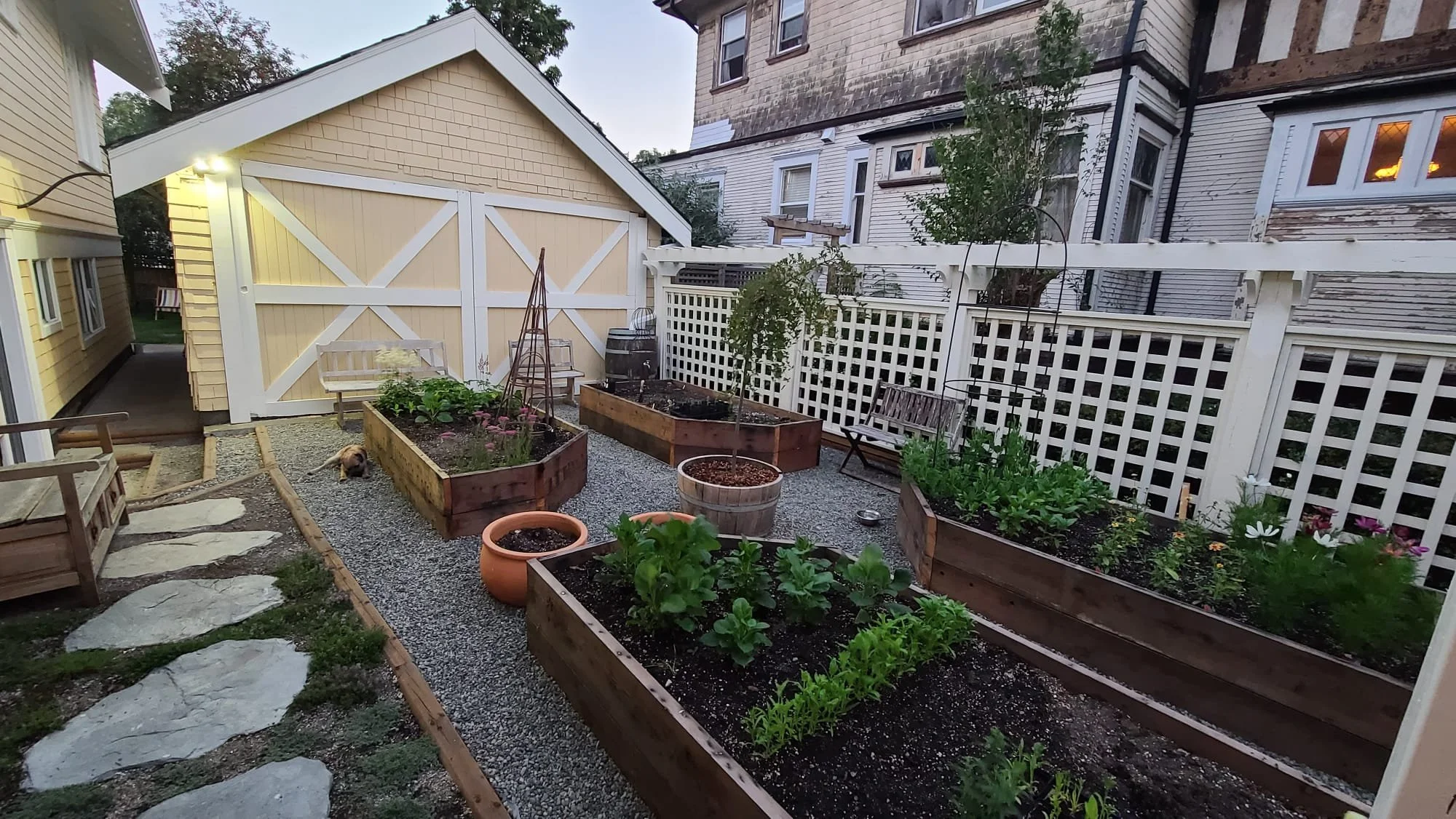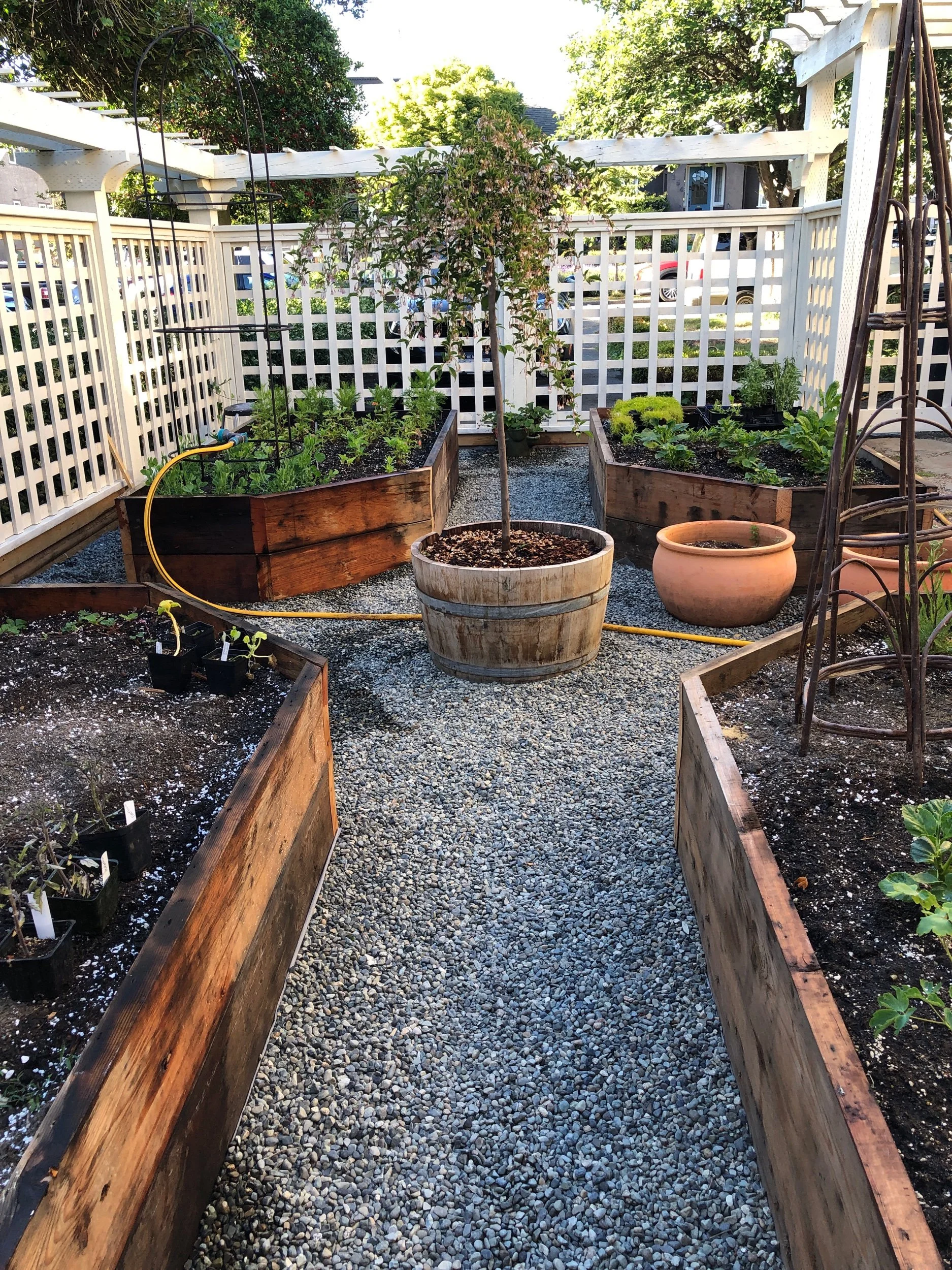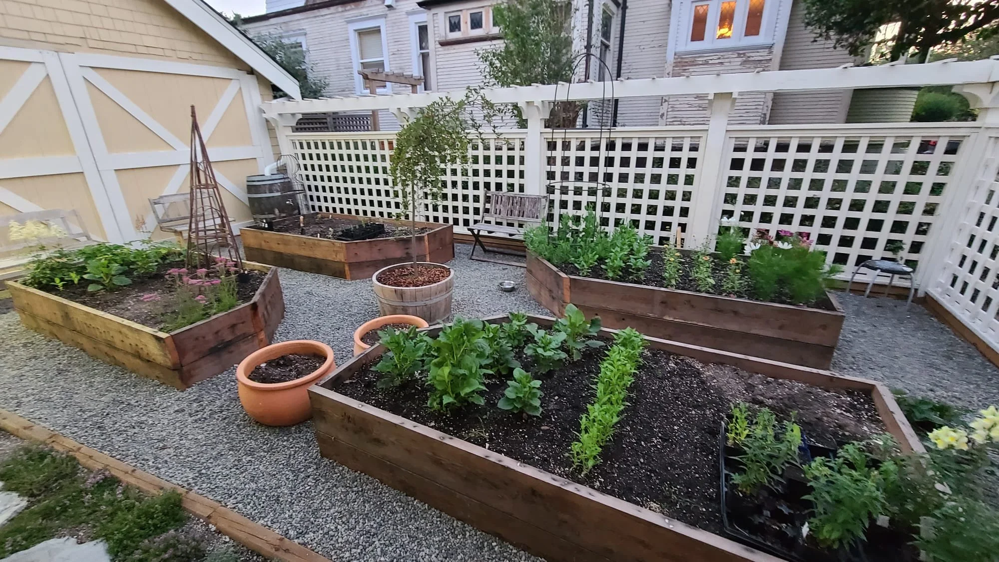 There were many details and steps that were needed to complete the four raised beds we had room for. Without an enclosure, all of our flowers would be eaten by our wandering urban deer so a pretty enclosure was designed. It not only serves its purpose of keeping the garden protected but it enhances the street appeal of our home.