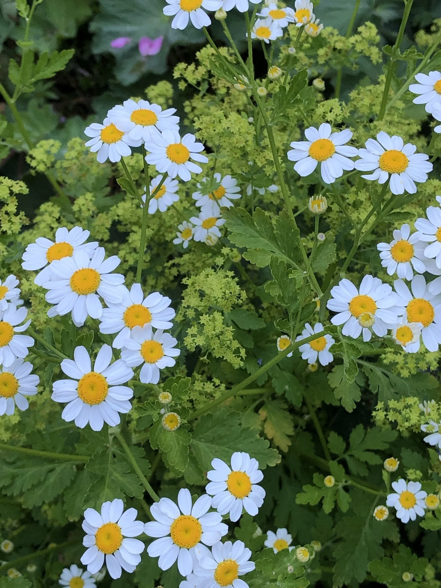 Feverfew - I also let it seed itself almost anywhere and then yank it out when it starts to fade.