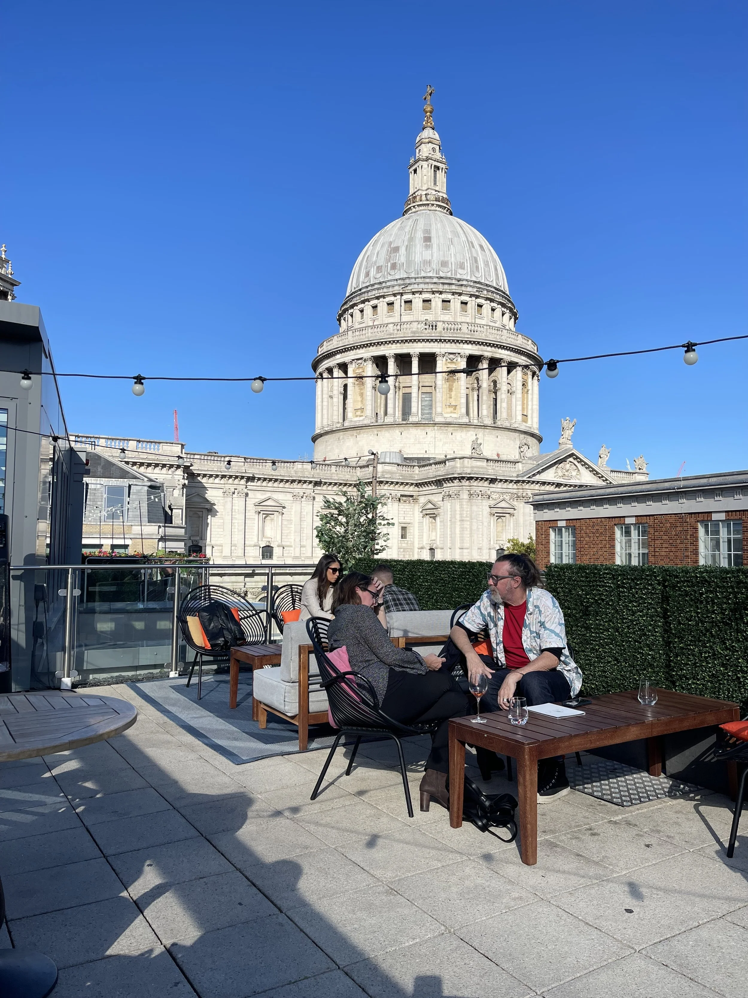 We had St. Paul’s Cathedral on our list and it was spectacular. We couldn’t go inside as our timing was a little off. Perhaps an even better experience was at Sabine Rooftop Bar that Ashleigh found during her London travel research. It gave us this amazing vista on a gorgeous day. The atmosphere was incredible.