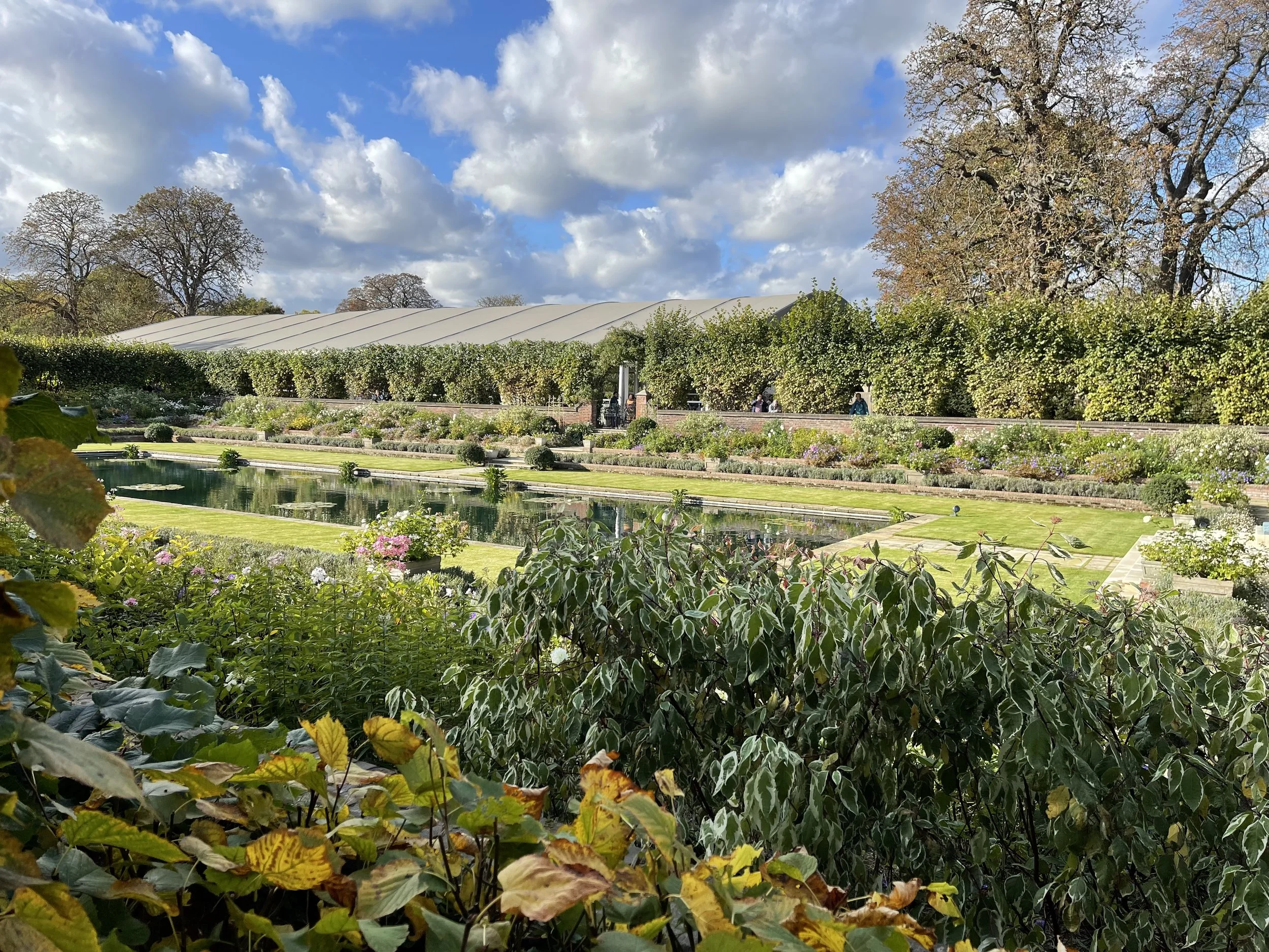 After a brief rest at The Gore we walked on to Kensington Gardens. We did a tour of Kensington Palace and were able to acquire a lovely table for afternoon tea, outside on the terrace overlooking the memorial gardens for Diana, Princess of Wales. Even in the first week of October the garden was beautiful.