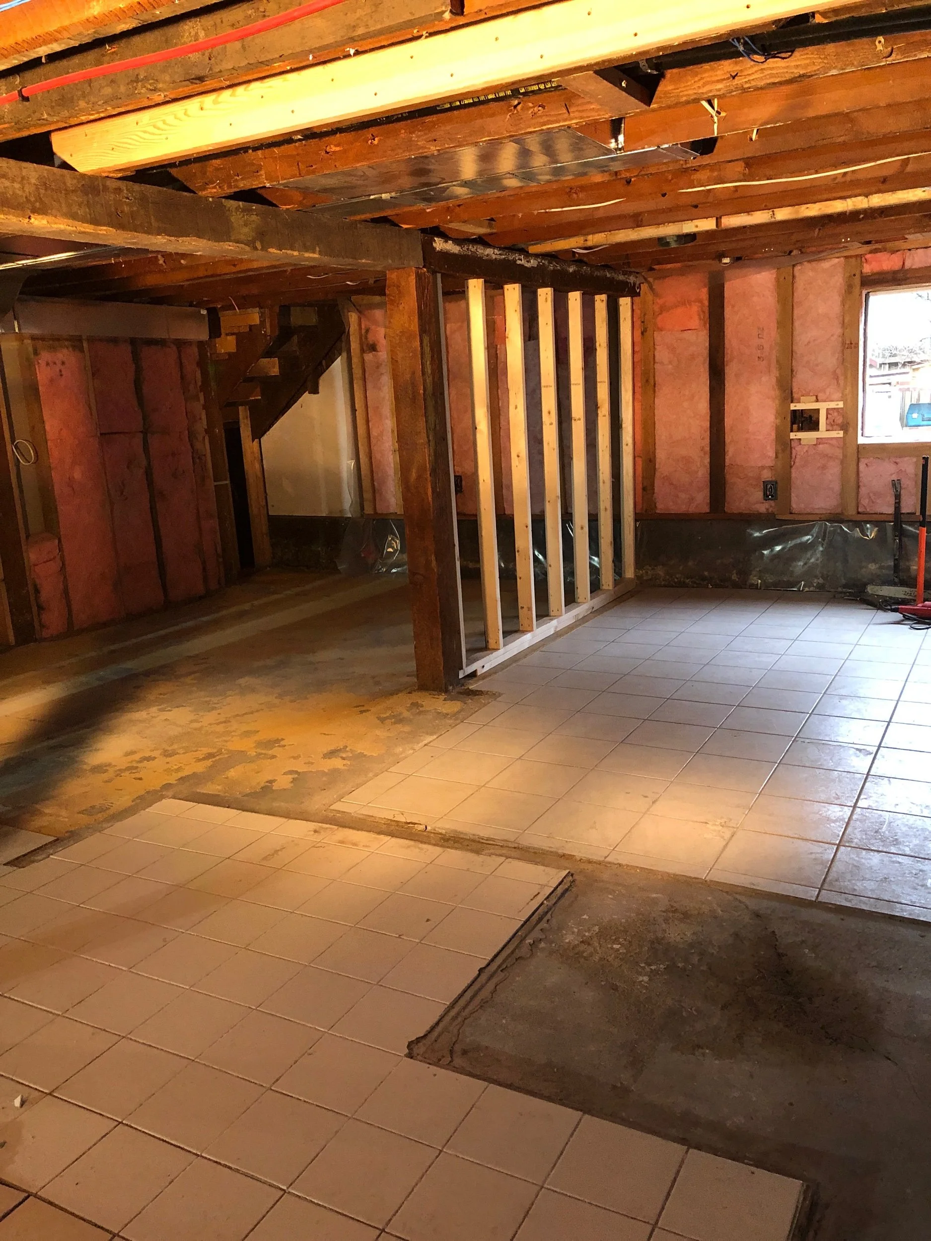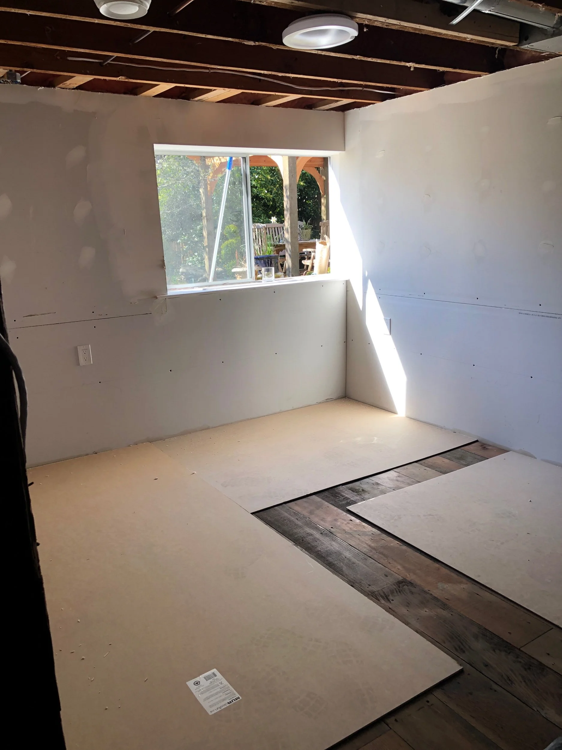 I’m so happy with the outcome of my space but to give context, I should show you what we were working with. Here are some pictures of my corner of the basement before and during its creation.