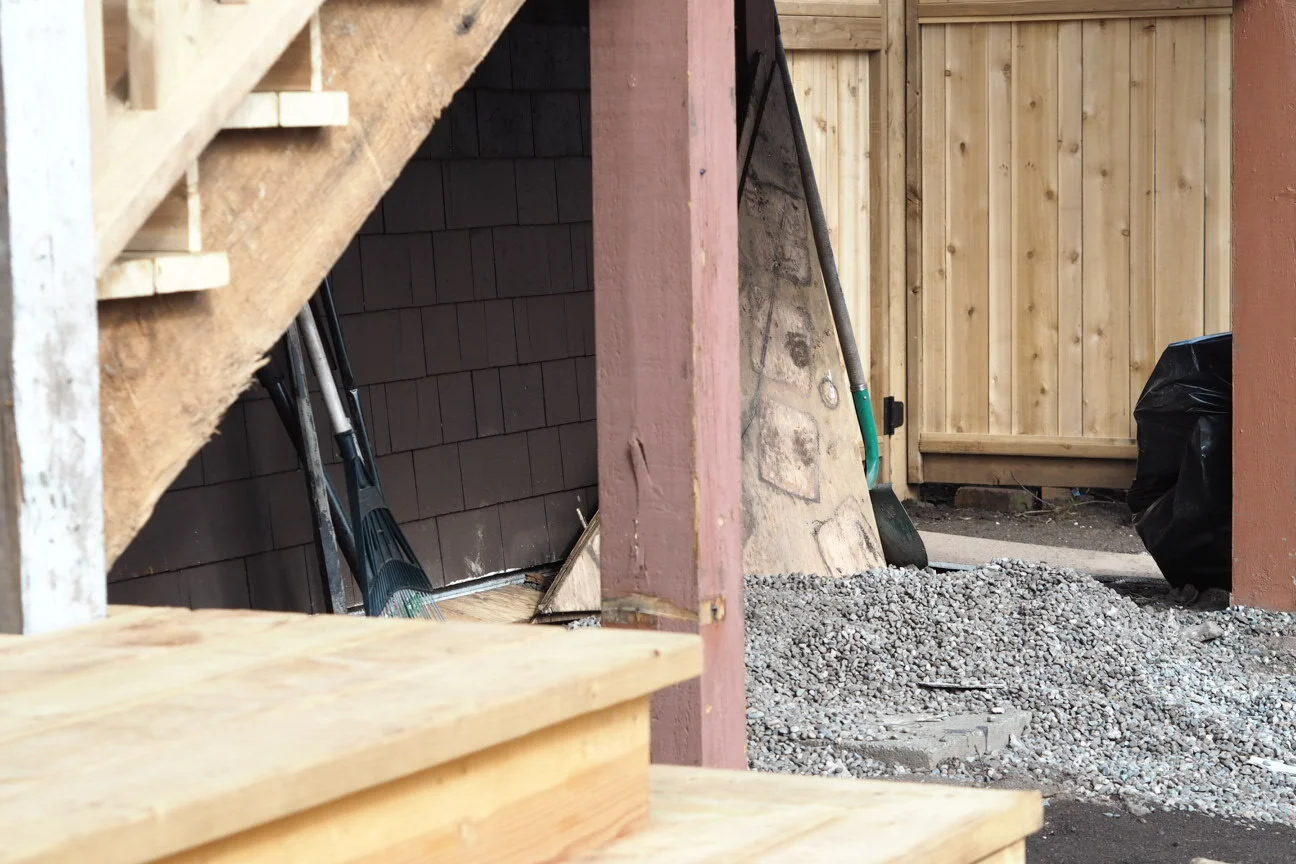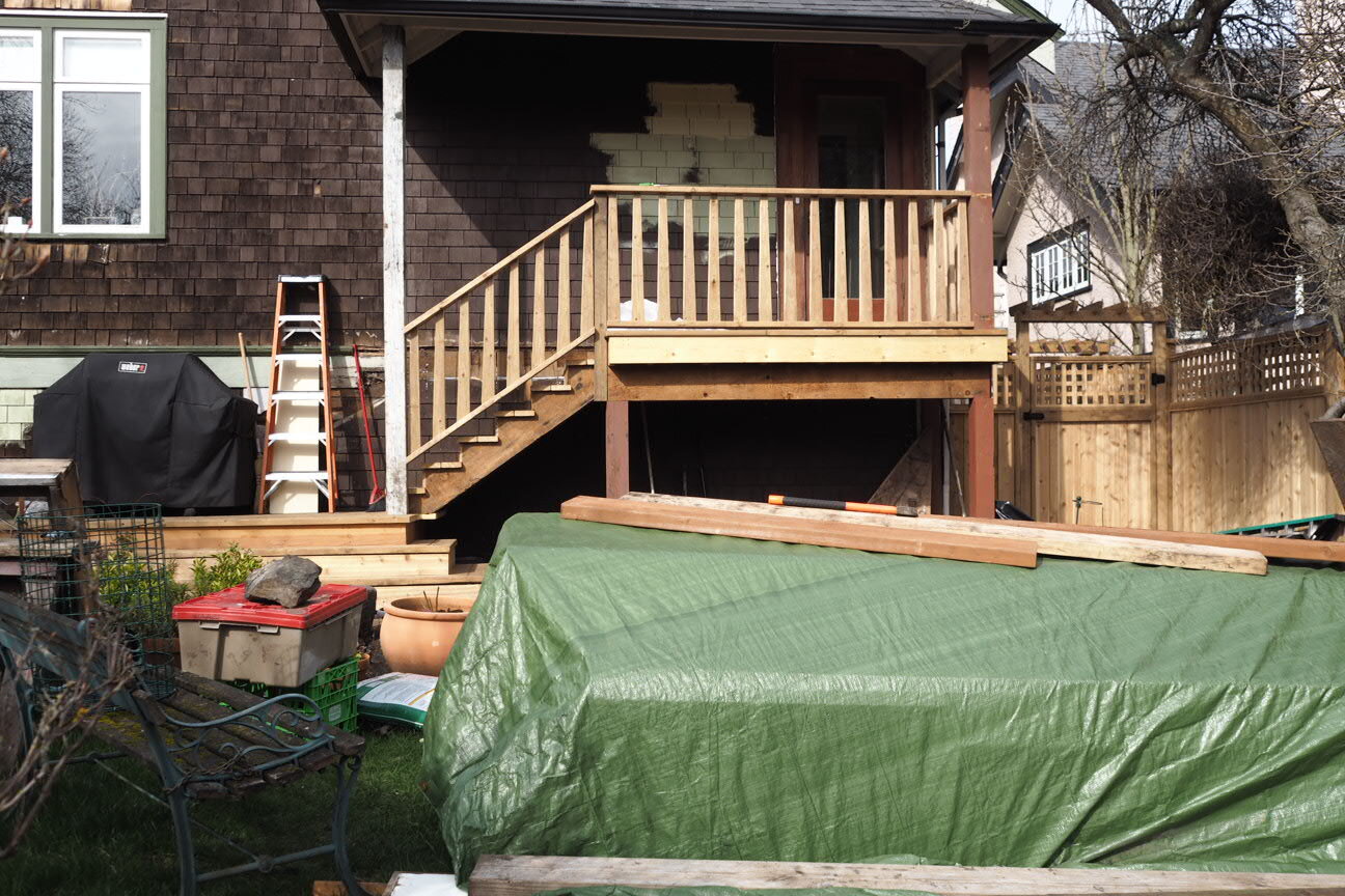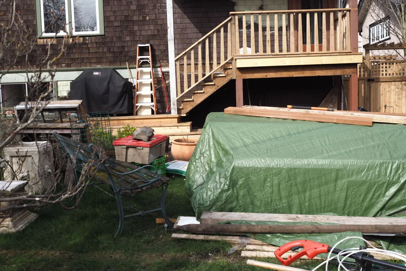 These next pictures are in random order but clearly show the state the “garden” was in when we arrived and that is after replacing the fencing and tearing out the large sundeck to make a better entry into the garden space.